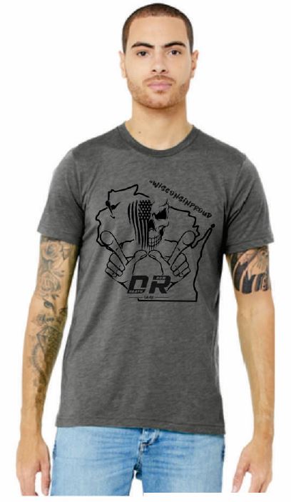 Death Row Gear - Wisconsin Proud Skull Flag - BC3413 - Grey Triblend